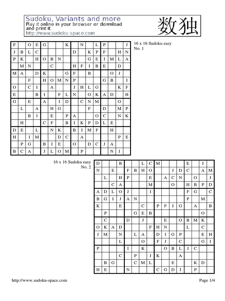 Sudoku 16 X 16 Para Imprimir - 24 best SUDOKU images on Pinterest | 4x4, Free coloring ... / For maximum clarity and standardization, all our puzzles are printed in black and white, without shades of gray, color or images.